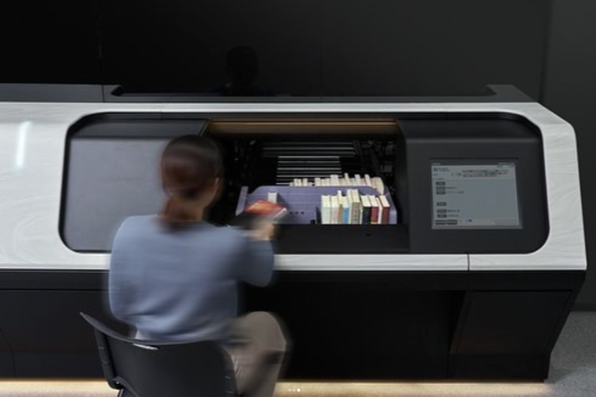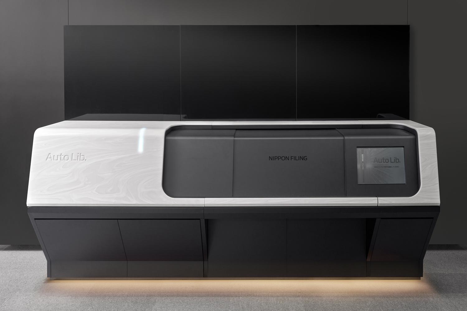 近年、大規模図書館を中心に普及が進む自動化書庫では、数十万冊規模の図書や資料が効率的に保管されています。その入出庫を担うのが、昨年創業100周年を迎えた日本ファイリング株式会社の「Auto Lib.」出納ステーションです。長年親しまれてきた前モデルに続き、今回もGKインダストリアルデザインがデザインを手がけました。
