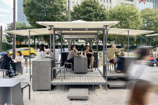 この広場再整備の基本構想デザインおよびストリートファニチュア等の詳細設計をGK設計が担当。人が公共空間に合わせるのではなく、自分のニーズに合わせて使いこなす「マイクロパブリック(小さな公共空間)」の発想のもと、多様な使われ方を受け止める環境デザインを6年かけて構築し、街路空間で公園のようなオープンスペースが実現しました。