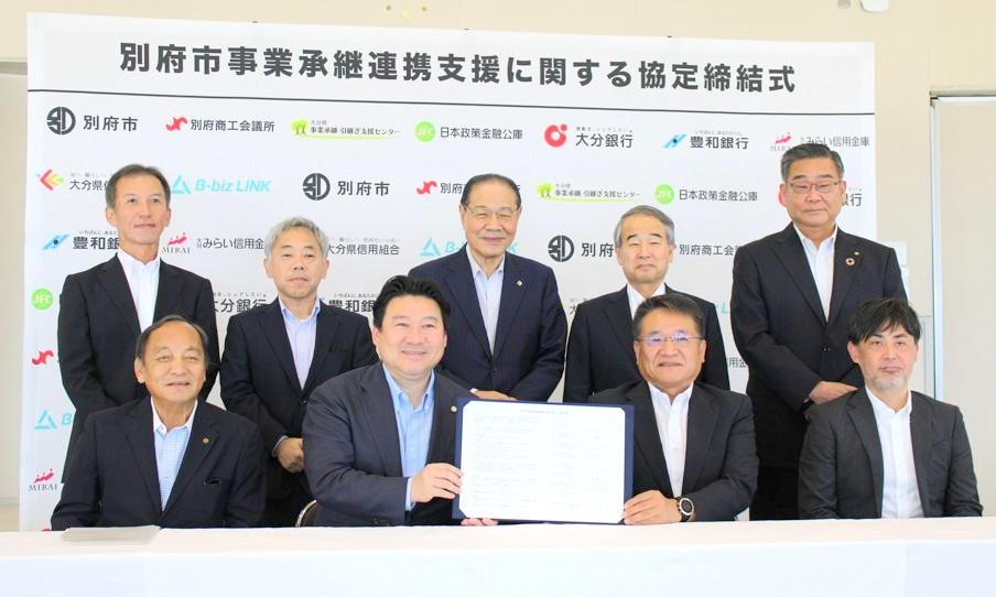 令和7年7月15日、別府市において、市内中小企業の円滑な事業承継支援と地域経済の活性化を目指す「別府市事業承継連携支援に関する協定」が締結されました。本協定は大分県内で初の地域連携であり、当センターも構成団体として参画しています。
